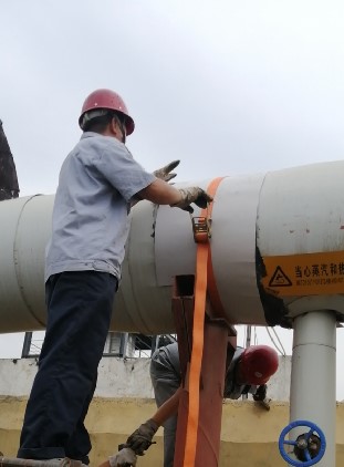 烟囱上设备平台焊接安装                                                       蒸汽管网保温铁皮修补