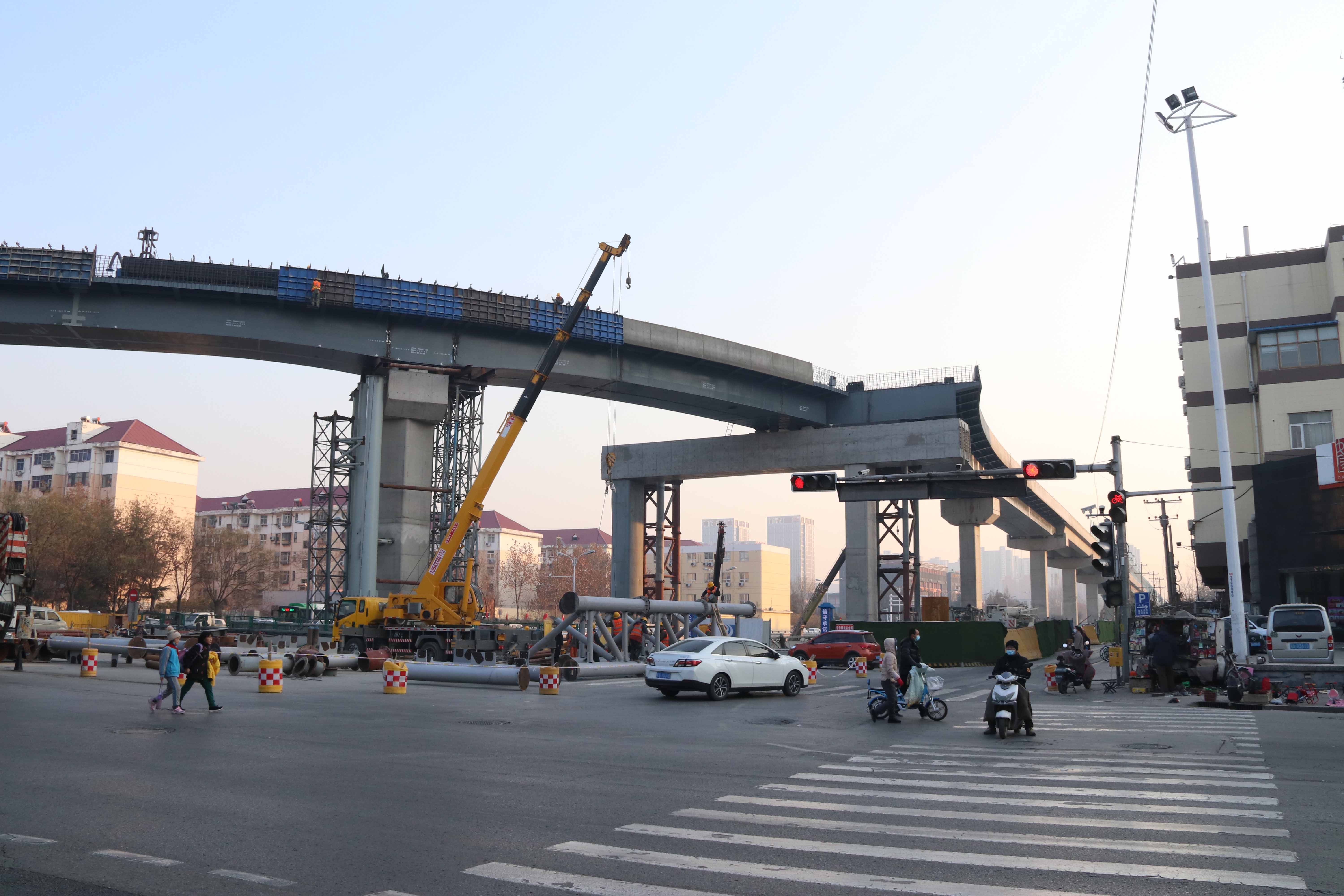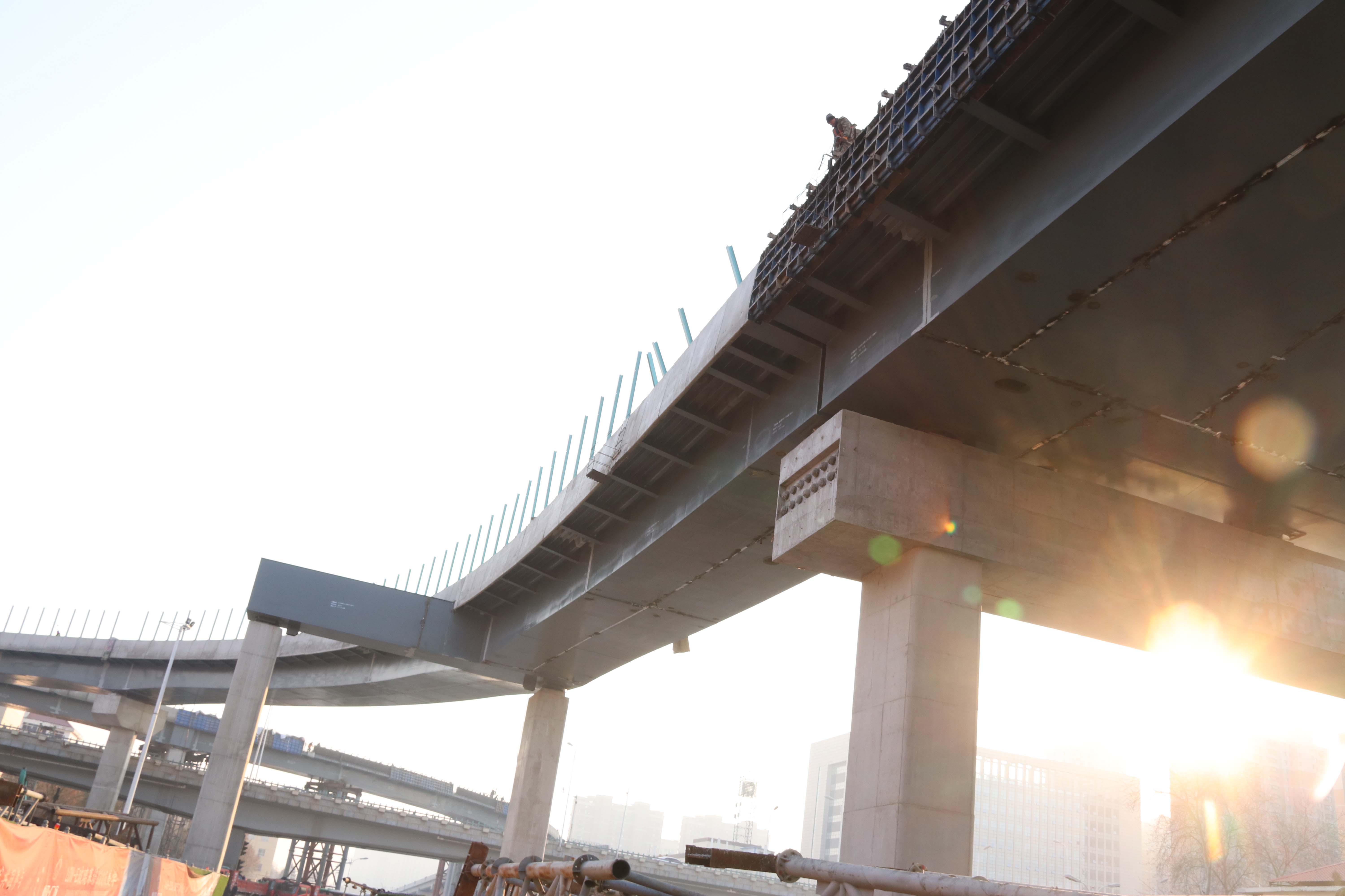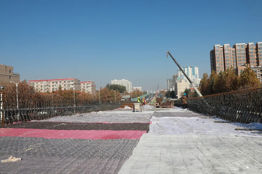槐安路西二环立交桥一期工程项目部全体人员自开工以来始终保持高昂的斗志,以“办法总比困难多”的态度积极应对,主动创造有利条件,在符合安全、质量、环保的标准下,抢干快干 。为确保冬季低温下混凝土能够保证强度和防冻,已启用混凝土搅拌站加抗冻剂,现场混凝土养护采用热风机 、电阻丝 、电热毯加热,同时覆盖棉被和塑料膜等冬季施工法 。预制梁与钢箱梁架设完成后 ,下一步将加快桥面铺装、防撞护栏、沥青路面施工速度。